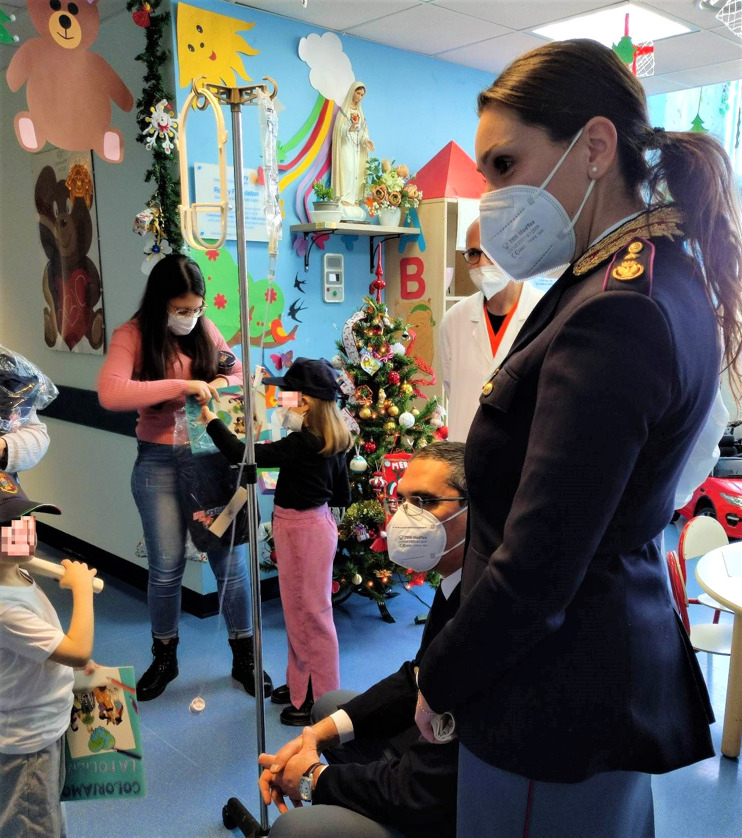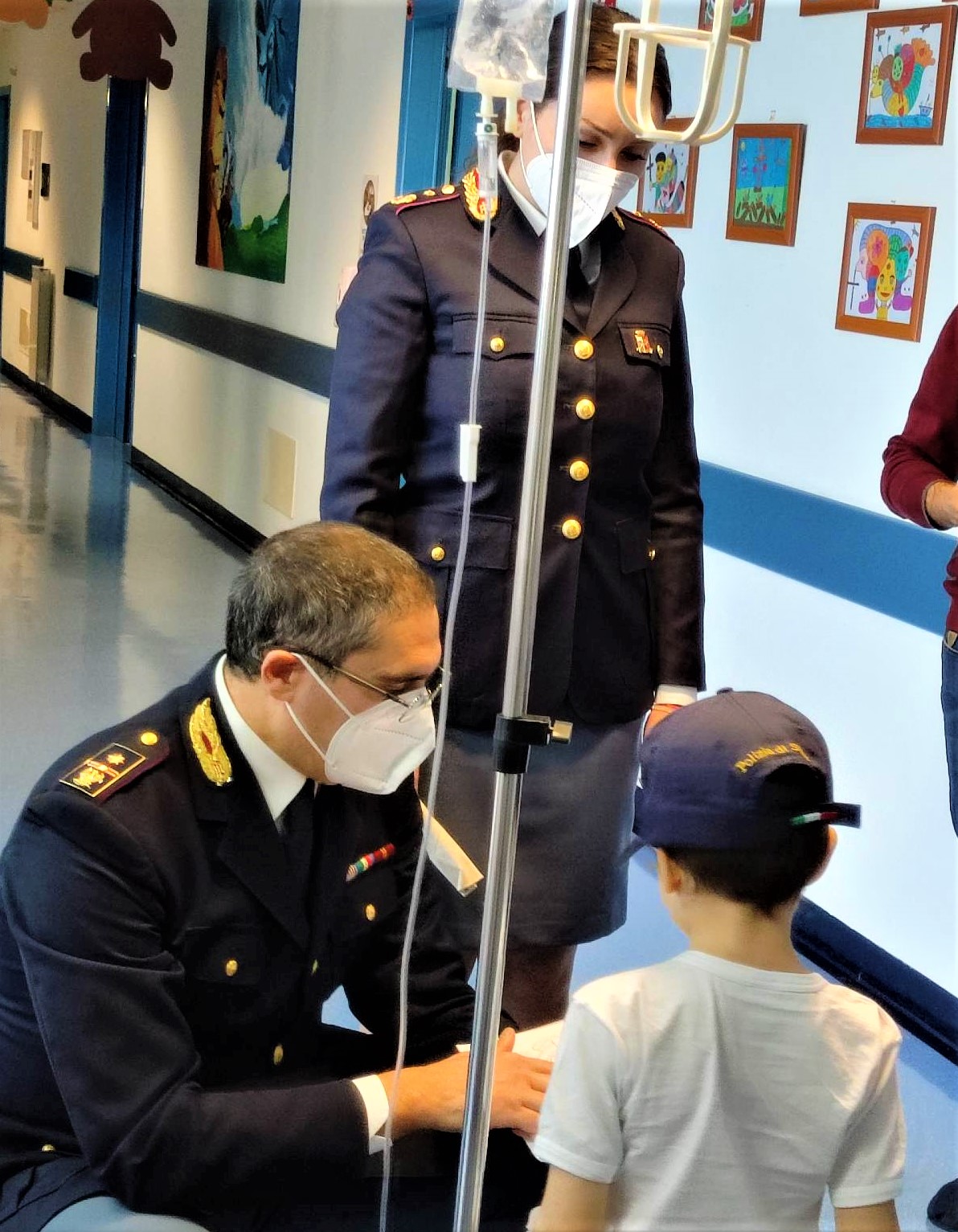 Il dirigente del reparto, Giovanni Chiara, e il personale infermieristico hanno accolto gli agenti. Un’accoglienza riservata da coloro che quotidianamente svolgono la difficile e delicata missione di curare i piccoli pazienti. Una breve visita in cui l polizia di Stato ha voluto regalare un sorriso ai bambini ricoverati in questi giorni di festa.