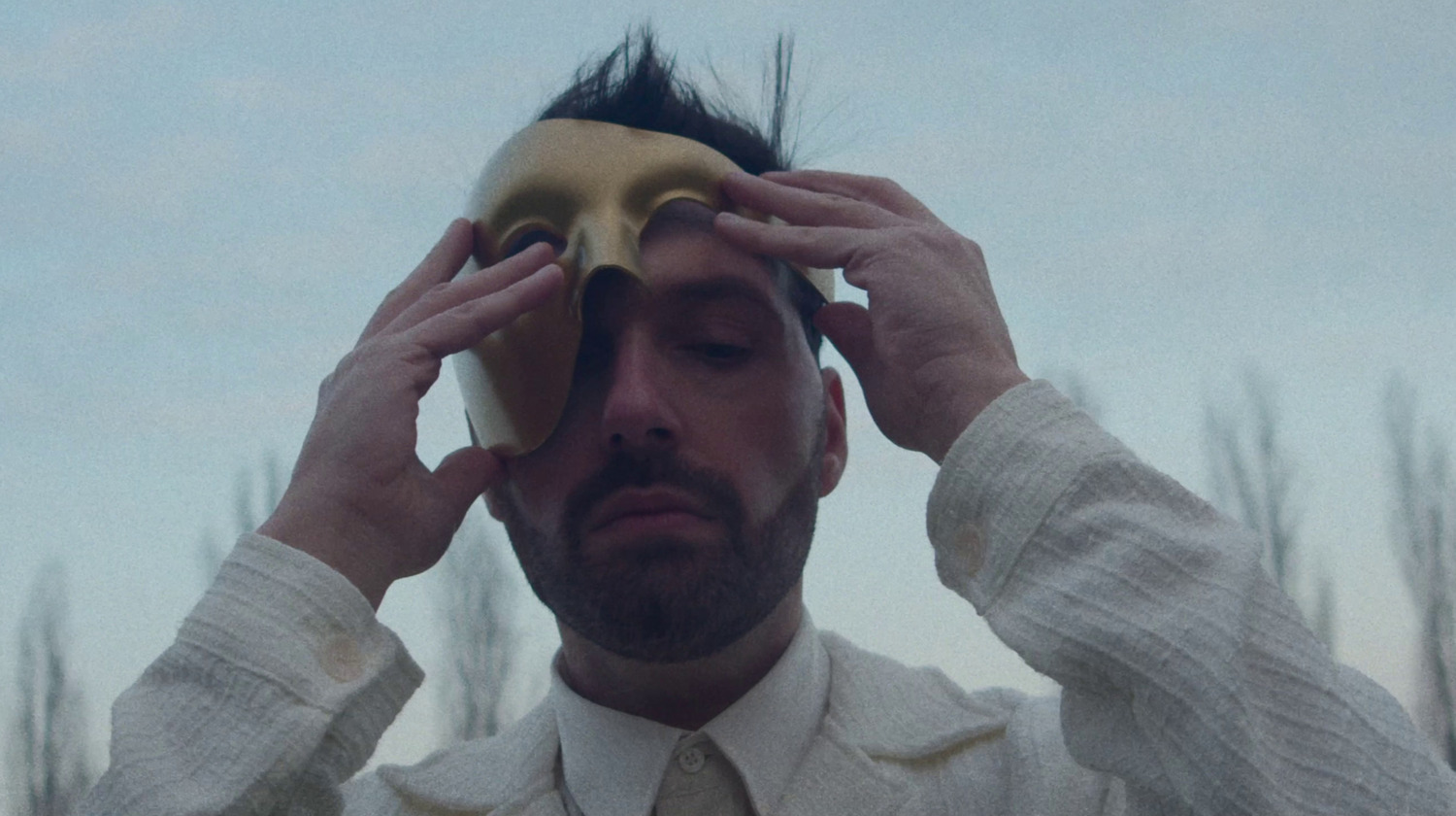 Un uomo cammina attraverso spazi sospesi tra sogno e realtà. Indossa una maschera che lo nasconde, lo protegge, ma che è destinata a cadere. Il video costruisce una narrazione visiva che si muove tra il concreto e il simbolico, alternando luoghi reali e scenari onirici in cui i confini tra il dentro e il fuori si dissolvono. Foreste avvolte nella nebbia, campi dorati al tramonto, superfici riflettenti che moltiplicano l’immagine del protagonista. Tutto si muove attorno a un unico tema: la trasformazione. Il protagonista attraversa questi paesaggi portando addosso un’identità che non gli appartiene più, fino al momento in cui smette di nascondersi. La maschera che indossa non è solo un oggetto scenico, ma il simbolo del conflitto con sé stessi, della paura di lasciarsi vedere per quello che si è. La sua caduta non è un gesto eclatante, non è una rottura violenta. È un passaggio naturale, inevitabile.