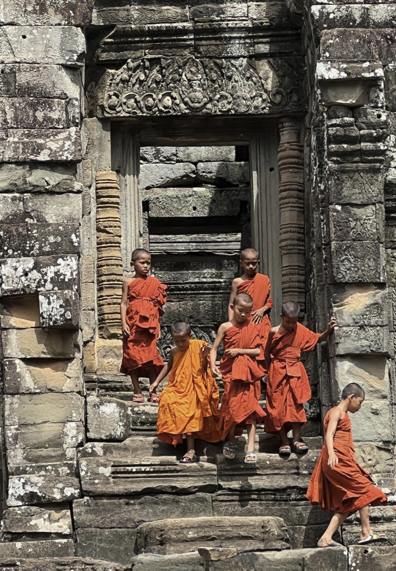 «Da anni Alfredo La Malfa, fotografo e pellegrino, viaggia per le strade impervie del mondo alla ricerca dei segni metafisici che l’uomo imprime nello spazio e nella pietra. Il suo cercare è nell’andare, cogliendo i segnali dell’oltre lungo il cammino: un andare ispirato, vissuto come preghiera. […] Dopo l’Etiopia, il Tibet, l’India, i tanti percorsi di Santiago, ora è la Cambogia, con un ampio numero di scatti in cui la pietra sacra (ad Angkor, Siem Reap e in altri luoghi), squadrata grigia sbrecciata, custode di antichi segni dell’uomo, apre nello stupore e nel silenzio al miracolo della luce. Luce cercata, desiderata e infine colta come segno di un assoluto che si invera, che lega cielo e terra nello stupore e nella bellezza», scrive Giorgio Agnisola nel testo che, dedicato agli scatti di Alfredo La Malfa, troviamo nella brochure realizzata per l’occasione.