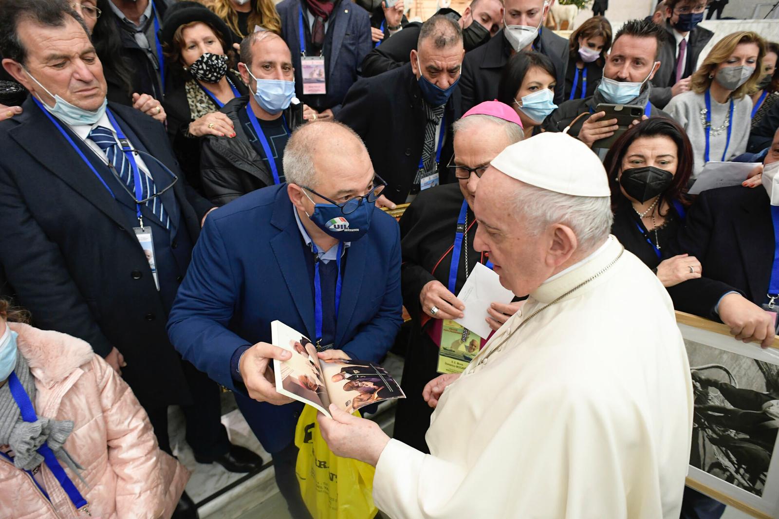 Lo scrive Tommaso Macaddino, segretario generale della Uil di Trapani, già segretario della Uila Pesca Sicilia, che ricorda “come sia stata una grande gioia ascoltare le Sue parole di amore, incoraggiamento e fede quando nel dicembre 2021 papa Francesco ha voluto incontrarci in Vaticano e ricevere il libro della Uila Pesca su quei 108 drammatici giorni”. “Oggi – aggiunge – preghiamo per Lei rivolgendoci a Maria Stella del Mare a cui aveva affidato in quelle terribili settimane i pescatori, imprigionati in Libia, e i loro congiunti, impegnati a non far calare mai il silenzio su quella ingiusta detenzione.