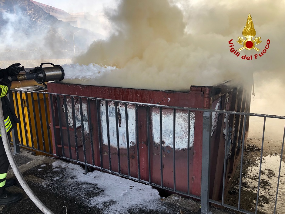Il rogo si è propagato all’isola ecologica di Pistunina e ha trovato innesco tra i cassoni della differenziata pieni di carta, plastica e legno.