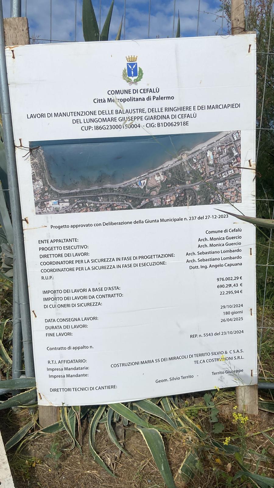 Lavori non ultimati sul lungomare Giardina di Cefalù, marciapiedi dissestati e sporcizia evidente. Sono ancora transennati i lavori di manutenzione di un tratto della zona litoranea del comune palermitano. A segnalare il ritardo nella conclusione dei lavori è Pasqualino Turdo, consigliere comunale di minoranza. Il cartello relativo all’intervento di “manutenzione straordinaria delle balaustre, delle ringhiere e dei marciapiedi” fissa la conclusione dei lavori al 26 aprile 2025. Tuttavia, lo scenario osservato ha sollevato forti dubbi sul rispetto delle tempistiche.