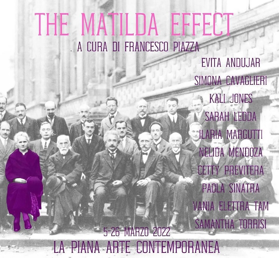 Dieci artiste per ricordare il valore e il genio di tutte quelle donne che sono state “cancellate”, lasciate indietro, volutamente dimenticate, per il solo fatto di appartenere al genere femminile. “The Matilda Effect”, progetto espositivo curato e ideato da Francesco Piazza e sposato con grande entusiasmo dal gallerista Massimo La Piana, prende spunto dalla “Giornata internazionale delle donne nella scienza” che si celebra l’11 febbraio. Giornata istituita dall’Onu nel 2015 con lo scopo di sensibilizzare e promuovere “la piena ed equa partecipazione di donne e ragazze nelle scienze, in materia di istruzione, formazione, occupazione e processi decisionali”.