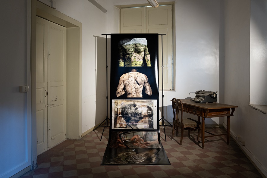 Samantha Torrisi entra in contatto con la natura in divenire in “Waterfall”, un dipinto site specific, che sembra venire fuori dalla sua stessa superficie, un leggero strato di tela sottile che diventa materico, tangibile, umano e organico. Un’astrazione di elementi naturali che permangono nel tempo, ed integra per la prima volta un’installazione più complessa composta anche da fotografie e video che rispecchiano l’ambito di ricerca multimediale dell’artista, suggestioni intime che si integrano con lo spazio.