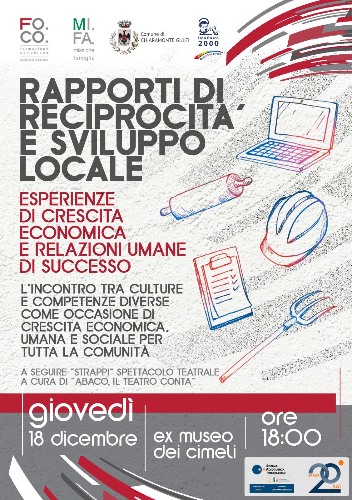 “Rapporti di reciprocità e sviluppo locale”: giovedì 18 dicembre 2025, alle ore 18, l’ex Museo dei Cimeli di Chiaramonte Gulfi ospiterà l’evento di presentazione dei Progetti SAI (Sistema Integrazione e Accoglienza) gestiti a Chiaramonte Gulfi e in altre città di Sicilia e Calabria dalla cooperativa Fo.Co. L’incontro sarà condotto da Marta Laterra che, insieme a Salvina Amato, presenterà il “progetto SAI” di Chiaramonte Gulfi. Il focus della serata sarà il contributo che questi progetti hanno dato allo sviluppo del territorio, con l’intervento del direttore generale della cooperativa, Salvatore Brullo.