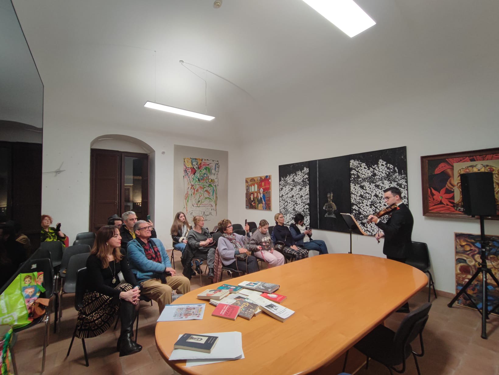 Le musiche dal vivo del violinista Edoardo Buonanno, studente del Conservatorio Bellini, hanno accompagnato il percorso come paesaggio sonoro emotivo, favorendo un clima di ascolto profondo e partecipazione autentica.