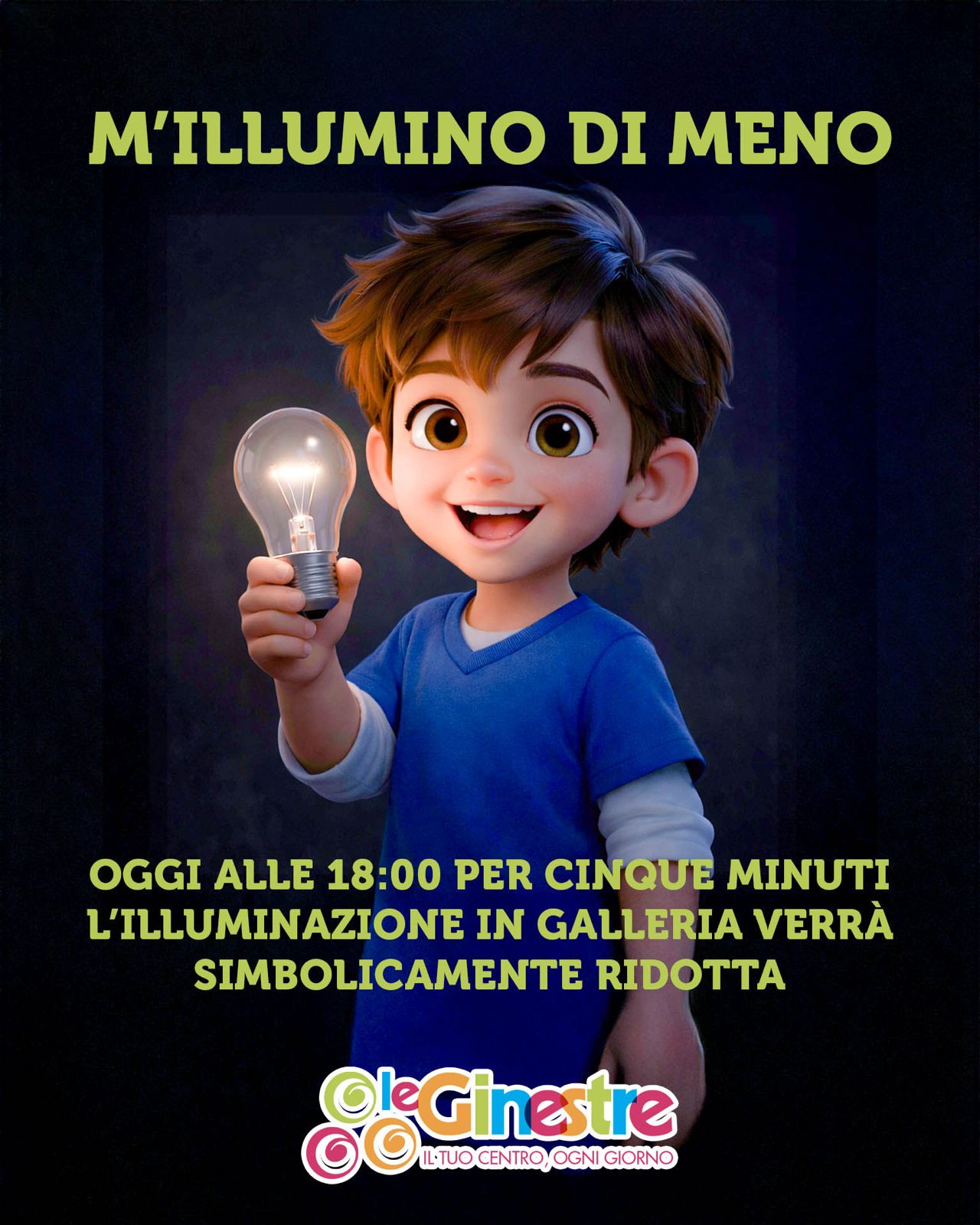 A volte basta spegnere una luce per accendere una consapevolezza. È con questo spirito che il Parco Commerciale Le Zagare e il Centro Commerciale Le Ginestre aderiscono a “M’illumino di meno”, l’iniziativa nazionale promossa da Rai Radio 2 e giunta alla ventiduesima edizione, che invita tutti a riflettere sul valore dell’energia, sul rispetto dell’ambiente e, quest’anno, sull’indispensabile apporto della scienza.