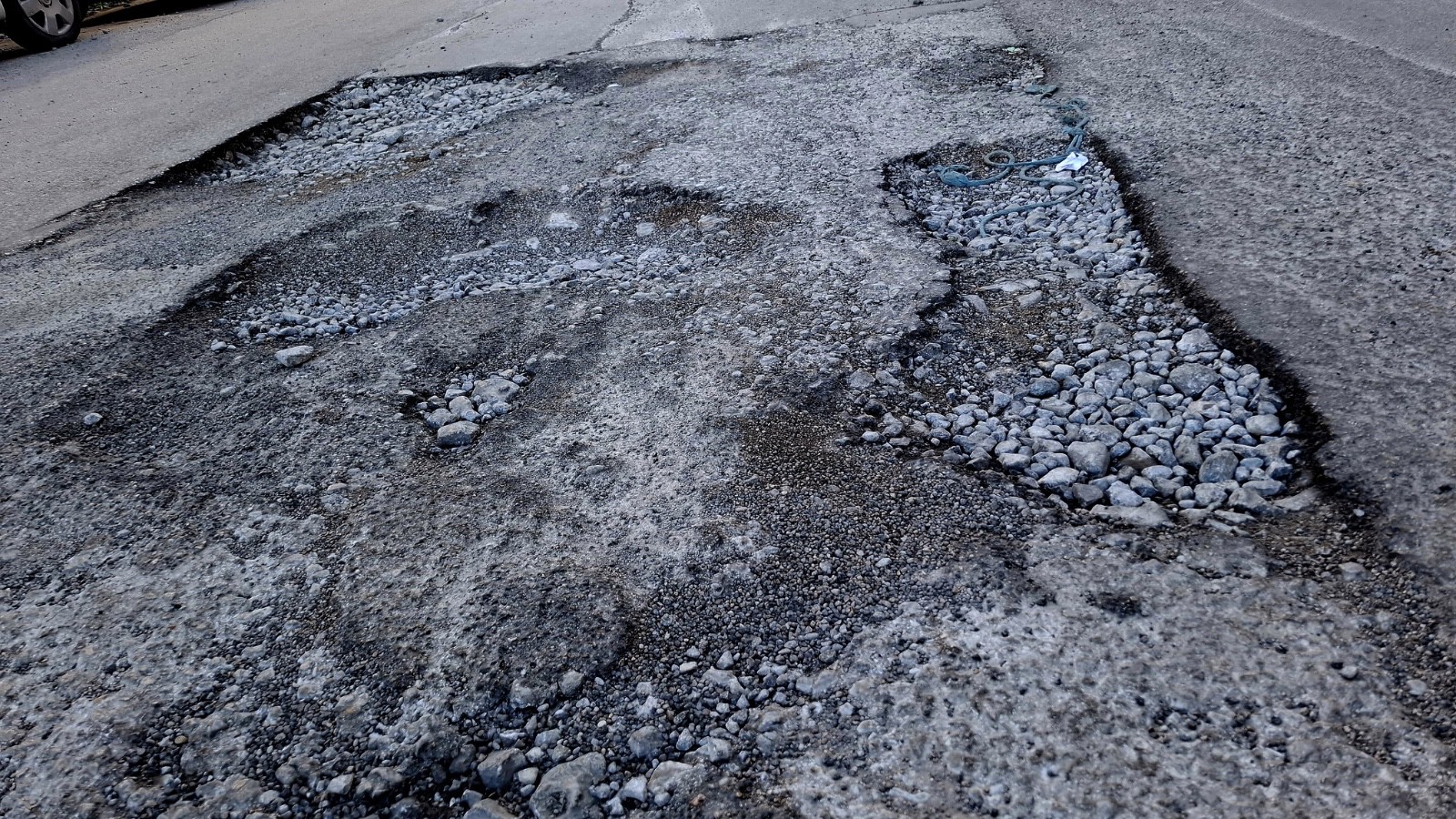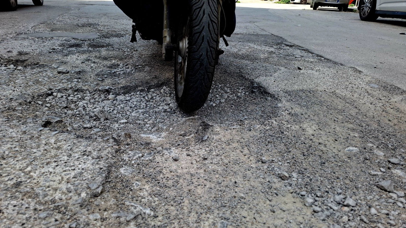 Via Tommaso Aversa, davanti al supermercato Max, presenta un manto stradale fortemente deteriorato, con numerose buche e crepe che mettono a rischio la sicurezza di automobilisti e pedoni.