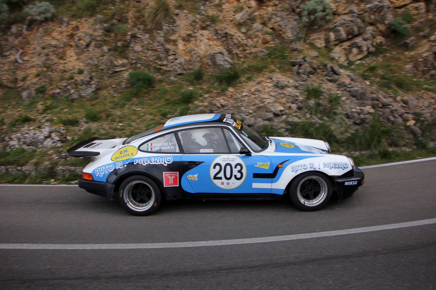 I vincitori della passata edizione hanno fatto il loro, senza nulla da rimproverarsi ma miglioratisi anche su alcuni tratti rispetto ai tempi fatti registrare nel 2025. Il podio è stato completato, a sorpresa, da un altro giovane talento isolano, ovvero, Carlo Nicoletti. Un vero exploit per il ventenne figlio d’arte che, in coppia con Salvatore Cancemi e al volante della “piccola” Peugeot 208 Rally4 della Em Management, ha centrato il primo “bronzo” in carriera nella specialità su strada. Scorrendo la classifica assoluta, a ridosso del terzetto di vertice (così come nel 2025), si sono piazzati i locali Ivan Brusca e Ignazio Midulla, su Peugeot 106, leader del Gruppo Racing Start Plus. Seguiti, in quest’ordine, da Calogero Manta e Salvatore Licata, su Toyota Yaris R1, e da Alessandro Centinaro e Pietro Nicotra, su Peugeot 208 Rally2. Settima piazza per Filippo Indovina (Skoda Fabia Rally2), al rientro dopo tre anni di stop, con Beppe Livecchi alle note, precedendo Giovanni Barreca e Marco Marin, con la Peugeot 208 Rally4 della Island Motorsport. Domenico Morreale (Renault Clio), con Giuseppe Scolaro, e Antonino Mangiapane (Peugeot 208 Rally4 – Dueeffe Racing), navigato da Vincenzo Nugara, hanno completato la top ten. Ben più serrato e incerto, invece, il confronto agonistico riservato ai modelli storici, che alla fine ha salutato il successo di Salvo Battaglia (Porsche 911 Carrera RS di 2° Raggruppamento) coadiuvato da “KOWALSKI”, nei colori Island Motorsport.