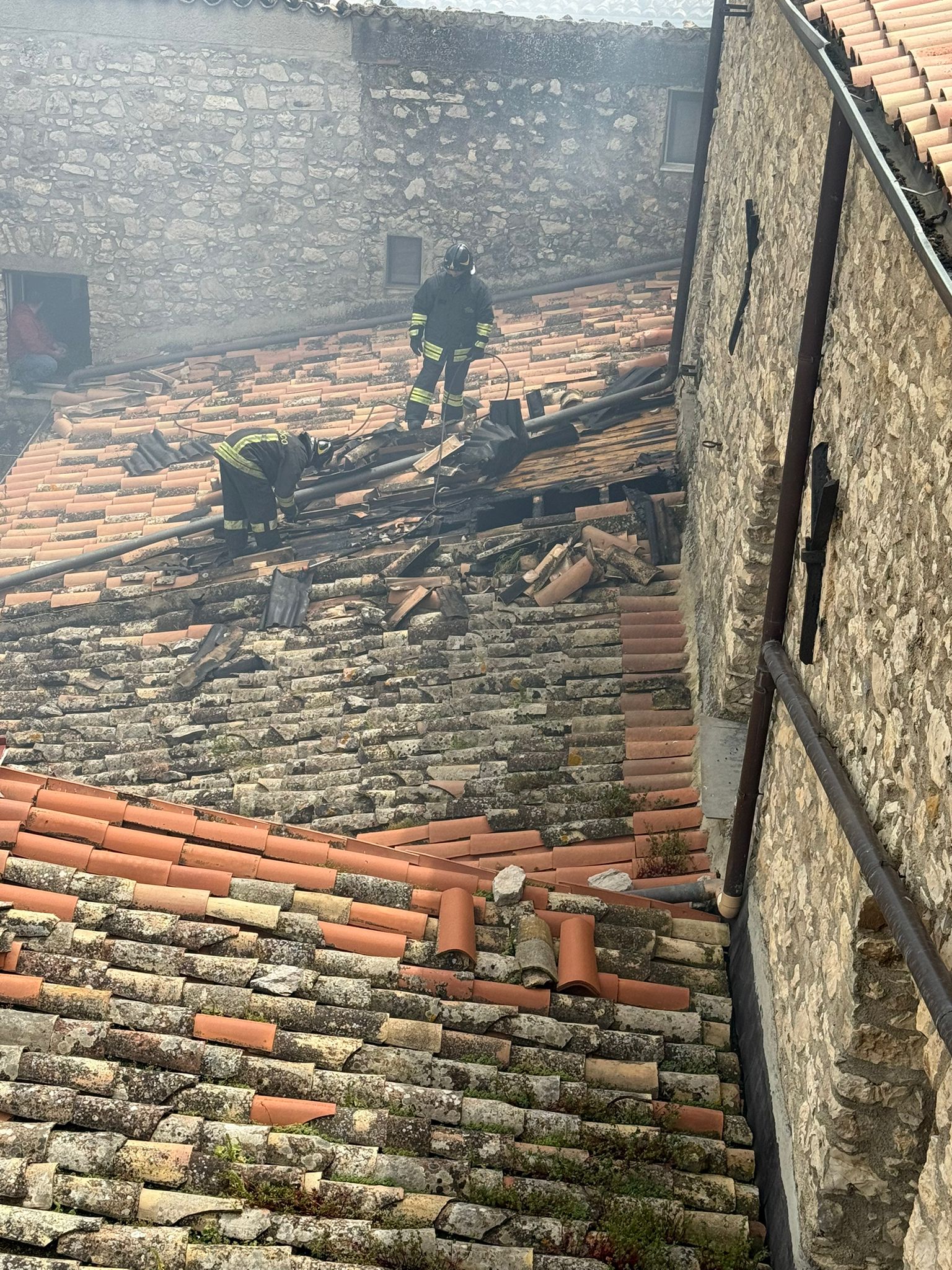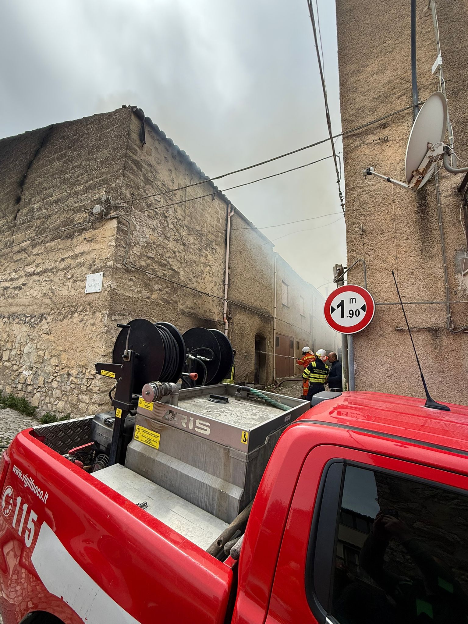 La situazione è apparsa particolarmente critica quando l’incendio, alimentato dal vento, ha raggiunto la chiesa di Santa Maria del Carmelo. Il calore e le scintille hanno lambito la struttura religiosa, simbolo storico e spirituale della comunità, mettendo a serio rischio l’edificio. Nonostante il tempestivo dispiegamento di uomini e mezzi, il fuoco non ha risparmiato diverse abitazioni civili, che hanno riportato danni strutturali e alle facciate, rendendo necessari sopralluoghi tecnici per verificarne l’agibilità.