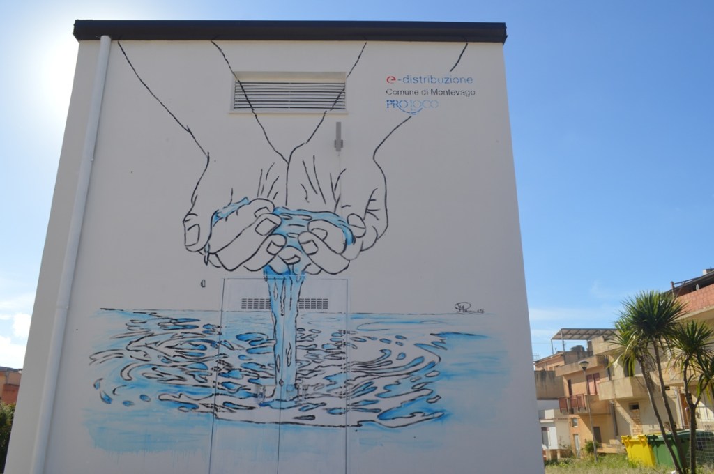 Sei murales su tre cabine elettriche prendono forma a Montevago. Il nuovo progetto di street art nel centro belicino si chiama “Cabine d’Arte” ed è realizzato dalla pro loco “Rutilio Scirotta”, in collaborazione con l’amministrazione comunale, nell’ambito delle iniziative di democrazia partecipativa. All’opera il maestro Paolo Manno, collabora l’artista Giuseppe Monreale; il progetto è dell’architetto Vincenzo Barrile. I primi quattro murales sono stati realizzati su due facciate di due cabine dell’Enel in via Giovanni XXIII e in piazza Aldo Moro, i lavori proseguiranno nella terza cabina in piazza De Gasperi. Il tema è quello delle mani che abbracciano la storia, la solidarietà, l’agricoltura e l’acqua della città termale.