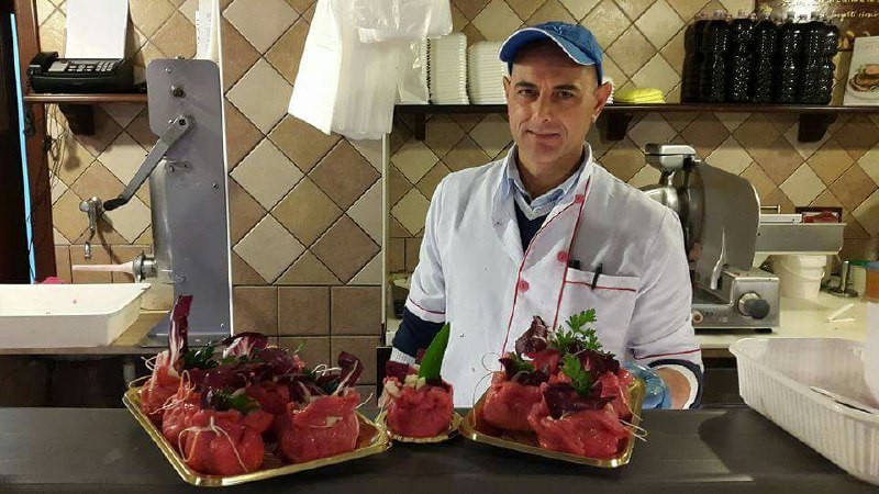 (Nella foto Pietro Macaluso con alcuni dei suoi preparati di carne).