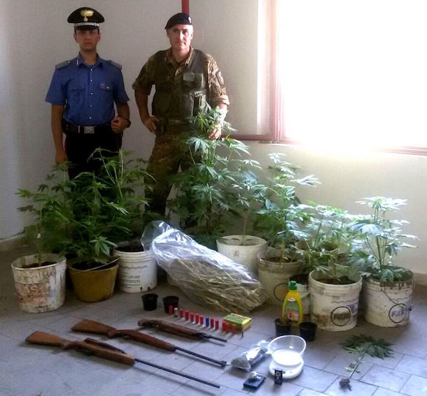 I carabinieri della stazione di Ravanusa (AG) hanno arrestato in flagranza di reato il pastore Alessandro Patti, 30 anni, per coltivazione di marijuana e di detenzione abusiva e alterazione di armi comuni da sparo.