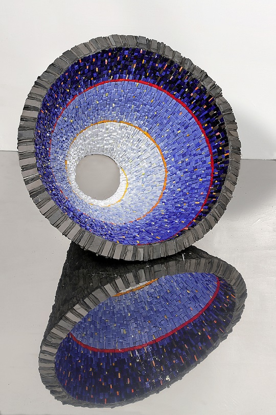 Di questa singolare intuizione di Cossyro – e della valenza anticipatrice della sua ricerca plastica verso forme e fenomeni oggetto di studio della fisica moderna e contemporanea – scrive Bruno Corà, nel testo critico del volume Black Holes, affiancando l’indagine di Cossyro a quella pionieristica di Fontana di oltre mezzo secolo fa: “Se i ‘buchi’ o i ‘concetti spaziali’ di Lucio Fontana – dice Corà – hanno fornito, in modo pionieristico negli anni Cinquanta una fisionomia ideale all’identità dello spazio siderale e perfino a quello delle particelle, ora Cossyro con i suoi black holes si è spinto verso frontiere ancora più estreme. Infatti, il ciclo dei buchi neri (2010-2016) concepiti e realizzati da Cossyro con tessere vitree e ardesia, e collocati sul pavimento sopra lastre di acciaio inox lucidato a specchio o sospesi in aria, consentono di prendere visione e coscienza di una realtà altrimenti invisibile poiché riferita a fenomeni astronomici aventi una massa di numerose migliaia di volte superiore a quella del sole strutturalmente munita di una velocità in grado di inghiottire la luce e pertanto non consentendo la sua diffusione”.
