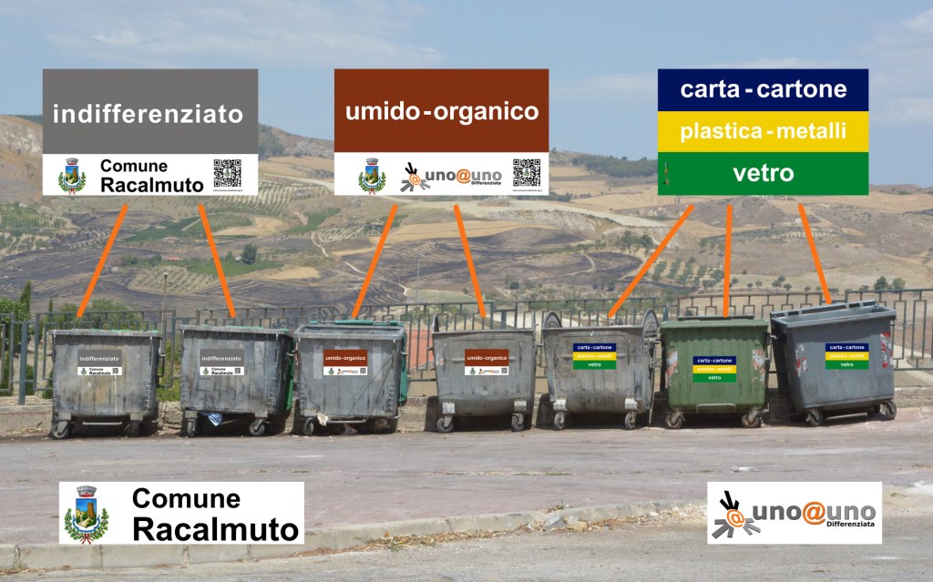 Anche a Racalmuto inizierà la raccolta differenziata dei rifiuti solidi urbani con il sistema uno@uno, sistema “ a fastidio zero”, di certificazione ed implementazione della raccolta differenziata.