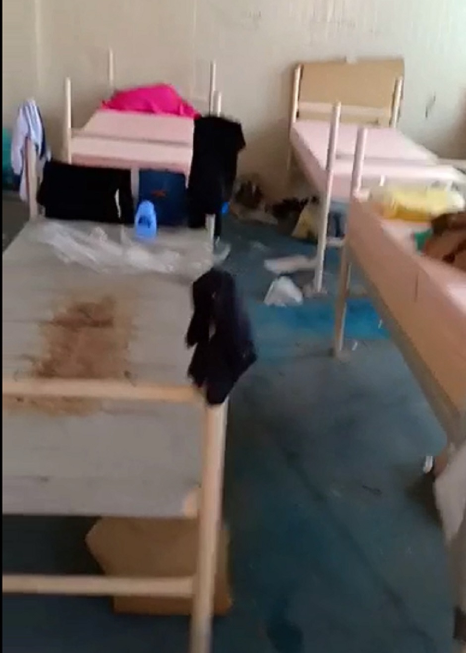 I video sono stati trasmessi dalla Tgr Sicilia. Bagni paludosi con sanitari arrugginiti, materassi spogli in stanze piene di calcinacci e agli angoli i resti delle coperte termiche della notte dei soccorsi.