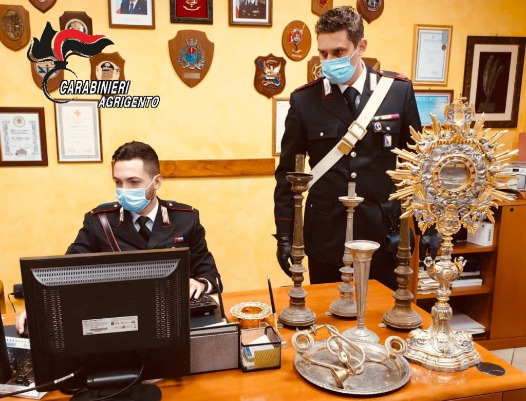 I Carabinieri della Stazione di Racalmuto (Agrigento) hanno ritrovato gli Oggetti Sacri rubati la scorsa settimana in una Chiesa cittadina.