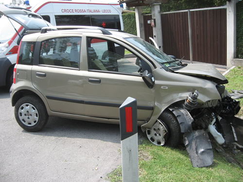Con la sua Fiat «Panda» nuova di zecca è finito contro la rotonda San Pietro, la stessa che segna l’inizio della Statale.
