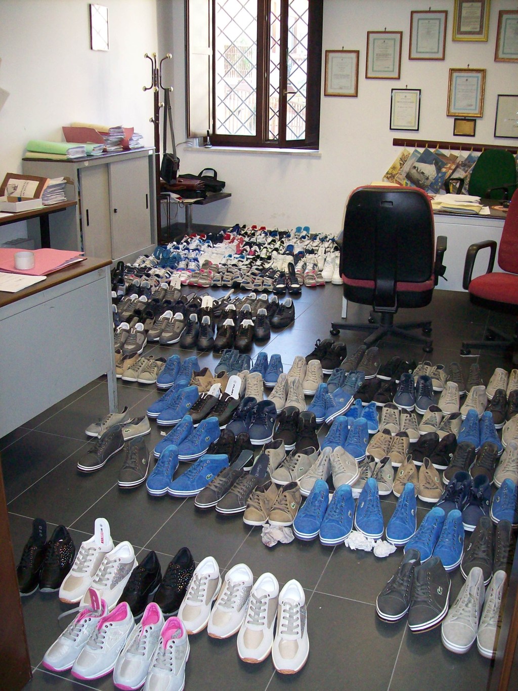 hanno dato in beneficenza circa 1.100 capi di abbigliamento (soprattutto scarpe e magliette) provenienti dai sequestri di merce contraffatti effettuati su tutta la provincia .