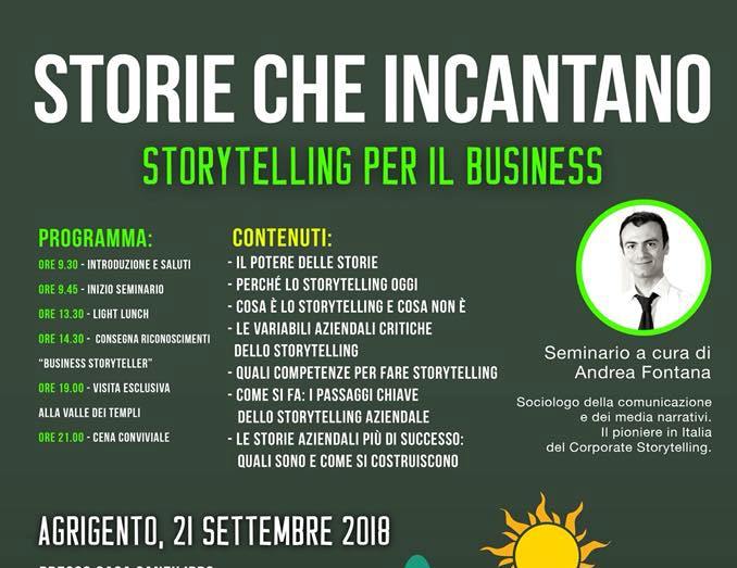 L’incontro, organizzato da Sicindustria e dal Gruppo Giovani di Sicindustria Agrigento, sarà tenuto da Andrea Fontana, sociologo della comunicazione e dei media narrativi, pioniere in Italia del Corporate Storytelling.