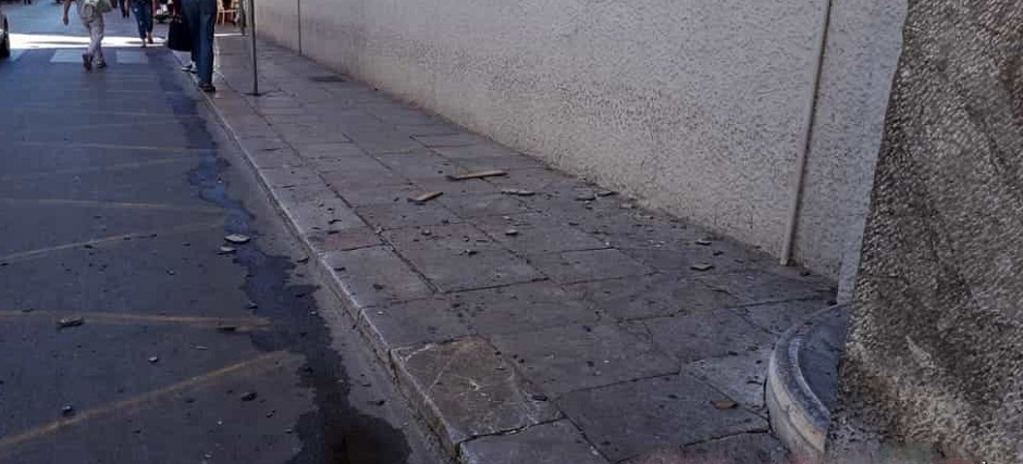 E’ crollato il cornicione, lato bar Saieva, del palazzo liberty di piazza Cavour ad Agrigento. Calcinacci e pezzi di muratura sono finiti sopra il gazebo del locale.