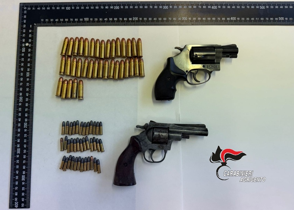 L’operazione che ha portato all’arresto di Grassonelli ha visto impegnati i carabinieri anche in accurate perquisizioni effettuate alle prime luci dell’alba. Durante i controlli, i militari hanno rinvenuto e sequestrato due revolver, rispettivamente calibro 22 e calibro 38 Special, quest’ultimo con matricola abrasa, oltre a un ingente quantitativo di munizioni. Dopo le formalità di rito, l’arrestato è stato trasferito presso la casa circondariale di Agrigento, restando a disposizione dell’autorità giudiziaria.