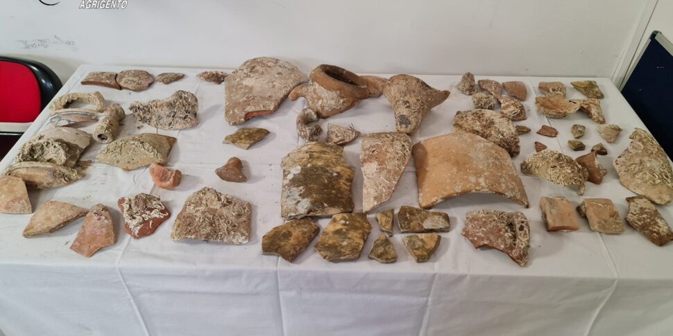 I carabinieri di Agrigento, in collaborazione con il nucleo Tutela patrimonio culturale di Palermo, hanno sequestrato 60 frammenti di anfore d’età greco-romana di provenienza sottomarina, che erano sicuramente all’interno di una nave naufragata, insieme a vasellame ritenuto essere di età medievale.