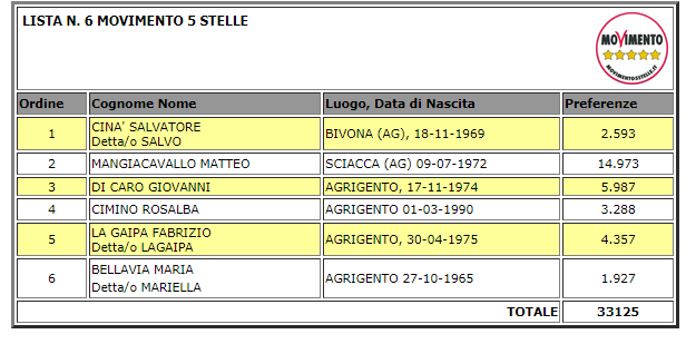 LEGGI QUI TUTTE LE PREFERENZE DELLA PROVINCIA DI AGRIGENTO