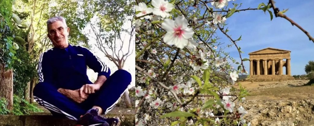 Arrivammo di buon’ora ad Agrigento. Adagiata su una collina a circa 320 metri di altitudine la Valle dei Templi si affaccia sul mare blu cobalto della costa meridionale della Sicilia. Ci incamminammo per una passeggiata nel tempo (siamo intorno al V secolo a.C.) da fare con passo lento attraverso il percorso che si snoda per un paio di Km fra oltre 20 siti che il sacrista Corrado con grande patos e un’inaspettata erudizione ci spiegava tutto ciò che vedevamo: templi, santuari, necropoli greche, romane, bizantine e paleocristiane. Tutto intorno enormi agavi scultoree, ulivi secolari, acanto e fichi d’india. Ma la cosa che rendeva tutto ciò ancora più bello ai nostri occhi di ragazzini curiosi era che tutto ciò un po’ qua e là vi erano delle pennellate di bianco e rosato dei mandorli che proprio in quel giorno davano il meglio della fioritura e che rischiarava tutta la valle, per celebrare la Festa del mandorlo in fiore (generalmente dal 1° a 10 marzo). Ma il colore che faceva da leitmotiv in questo panorama era quello della calcarenite, un tufo arenario che si tinge di riflessi dorati per la presenza di ruggine e conchiglie fossili, perché un tempo era roccia marina. La Valle dei Templi era una gioia per gli occhi e una scoperta per la nostra mente perché a narrare la storia millenaria con dovizia di particolari avevamo il nostro amato sacrista…