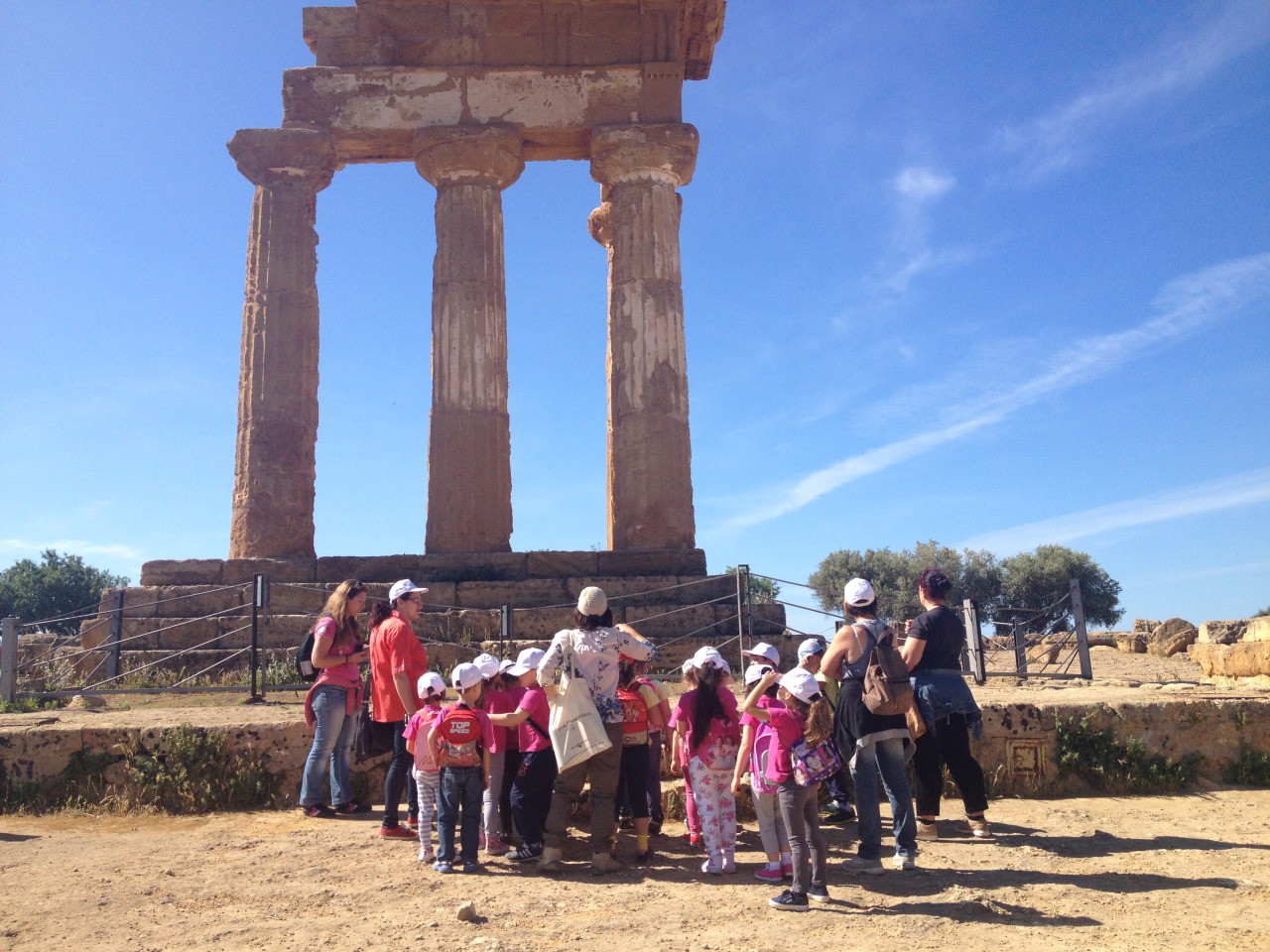 Ed ecco che arrivati vicino al Tempio della Concordia il nostro amato parroco Don Accetta ci fece mettere a semicerchio e incominciammo a degustare il nostro pranzo a sacco… il Sacrista dopo poco tempo incominciò a raccontarci tutto ciò che sapeva della sua terra natia incominciando proprio dal Mandorlo in Fiore…