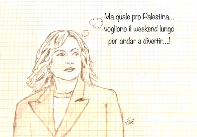 Meloni ha aggiunto: «Continuo a ritenere che tutto questo non porti alcun beneficio al popolo della Palestina. In compenso mi pare di capire che porterà molti disagi al popolo italiano che affronterà nei prossimi giorni, temo, diversi disagi per una questione che mi pare centri poco con la vicenda palestinese e centri molto con le questioni italiane. E del resto ce lo spiegano i sindacati: mi sarei aspettata che almeno su una questione che reputavano così importante non avessero indetto uno sciopero generale di venerdì perché il weekend lungo e la rivoluzione non stanno insieme»