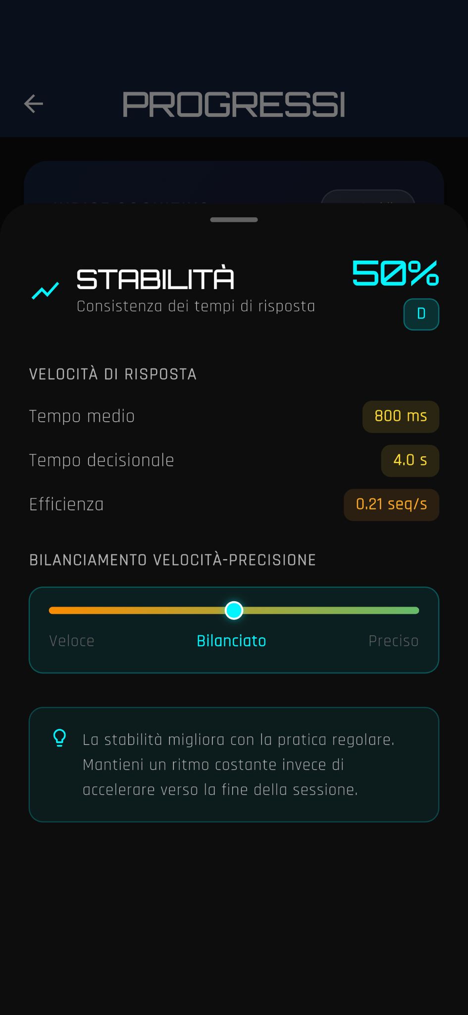 Per questo, nella struttura dell’app, abbiamo lavorato su aree che toccano aspetti diversi della performance mentale: memoria, velocità di elaborazione, ragionamento, abilità spaziali e controllo inibitorio. La scheda ufficiale descrive infatti Tower12 come un’esperienza costruita per valutare velocità di risposta, accuratezza, costanza della prestazione, controllo visuo-spaziale e capacità di adattamento, considerando anche la sequenza delle risposte, le esitazioni, le correzioni e il ritmo generale della sessione.