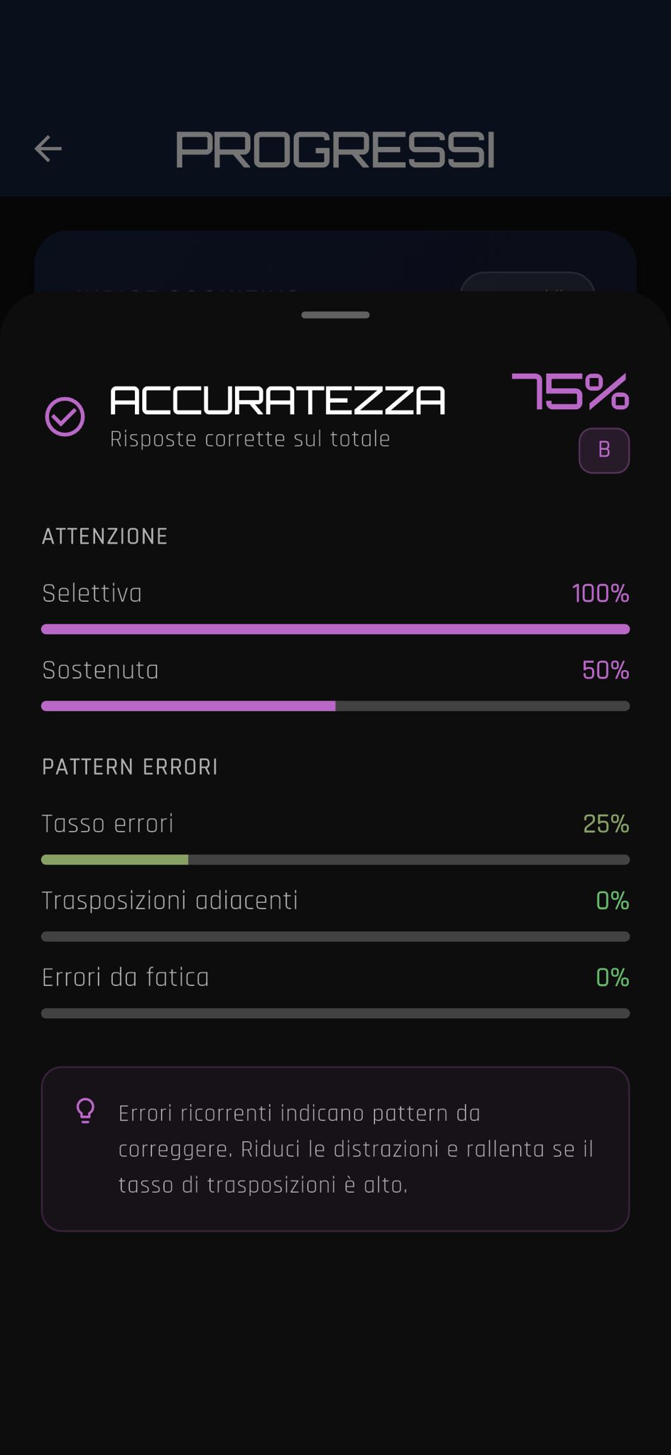 Quello che mi interessava davvero, però, non era solo costruire un’app “bella da vedere” o “facile da usare”. Il punto era un altro: creare uno strumento che provasse a osservare il funzionamento cognitivo non soltanto nel risultato finale, ma nel percorso che porta a quel risultato.