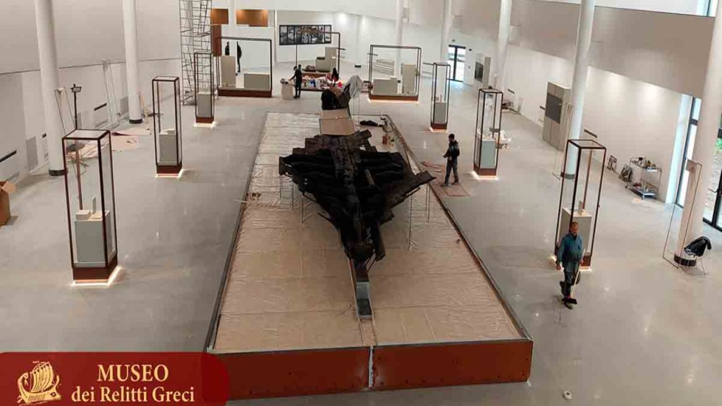 Il nuovo spazio espositivo accoglie il celebre relitto greco rinvenuto nei fondali di Gela, una testimonianza unica della presenza ellenica in Sicilia e del ruolo strategico dell’isola nelle rotte del Mediterraneo antico. L’imbarcazione, datata all’età arcaica, rappresenta uno dei ritrovamenti navali più significativi dell’archeologia subacquea italiana.