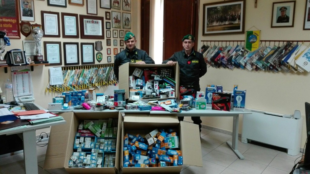 Il materiale sequestrato era sprovvisto delle indicazioni previste dalla normativa comunitaria e nazionale. Gli articoli erano lampadine, prolunghe, adattatori, portalampade, faretti, torce, accessori elettronici, asciugacapelli, ventilatori, e caricabatterie.