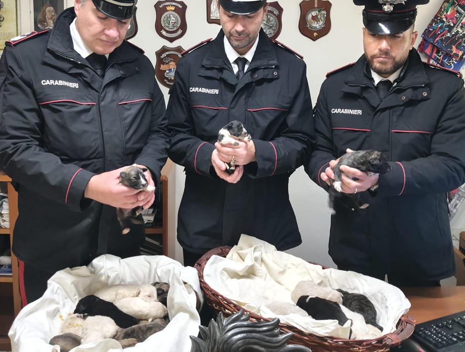 Il senso civico e la responsabilità di un cittadino e il tempestivo intervento dei carabinieri hanno consentito di salvare diciotto cuccioli di cane abbandonati.