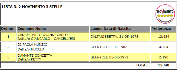 LEGGI QUI TUTTE LE PREFERENZE DELLA PROVINCIA DI CALTANISSETTA