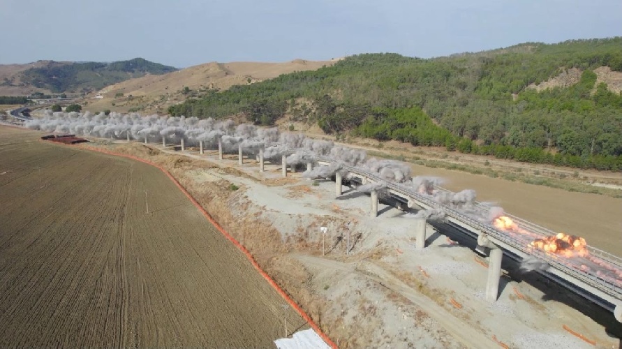 Si avvicina la demolizione delle ultime dieci campate della struttura. Martedì 19 ottobre, infatti, scatterà la seconda fase della demolizione con esplosivo della carreggiata nord del vecchio viadotto “Salso”, lungo la statale 640 “Strada degli Scrittori”. In precedenza, poche settimane fa, erano state già demolite le prime 36 campate della struttura.