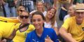 Non solo catanesi fra gli spettatori seduti sulle basole della piazza barocca: come si vede nella foto era presente anche una piccola pattuglia svedese in tenuta gialla che si è mescolata fra i tifosi azzurri.
