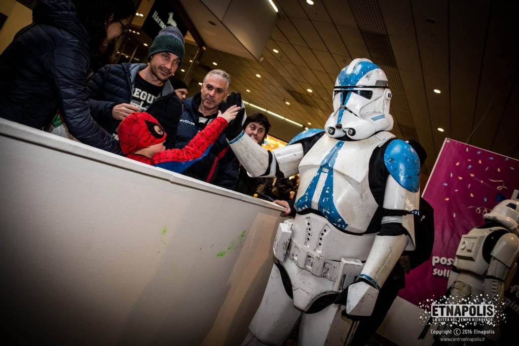 Grandi e piccini in coda per la foto ricordo con le spettacolari maschere di Darth Vader, gli Stormtrooper e gli ufficiali imperiali con cui rivivere anche solo per qualche istante le epiche avventure spaziali fra le galassie.