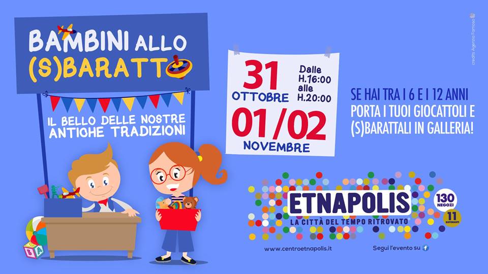 S’intitola “Bambini allo (S)Baratto” ed è l’innovativa manifestazione pensata da Etnapolis per la prima festa d’autunno, quella dei Morti, con i nonni “in cielo” che portano ai nipotini giocattoli e biscotti per addolcire il disagio della lontananza e coltivare il sentimento del ricordo affettuoso chi è ormai invisibile.