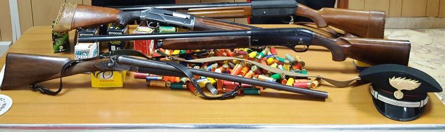 Un fucile marca Italarm calibro 16, un fucile marca Franchi calibro 12, un fucile marca Breda calibro 12, un fucile da caccia semiautomatico marca Franchi modello 712 light calibro 12, 1034 cartucce da caccia calibro 12, 51 cartucce da caccia calibro 16 e 6 cartucce da caccia calibro 28.
