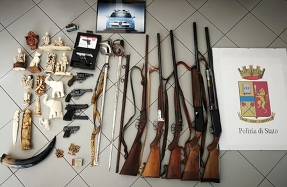 In seguito alla denuncia di una donna che ha detto di essere stata aggredita dal fratello, un commerciante, la Polizia di Stato a Catania ha denunciato un uomo perché trovato in possesso di cinque pistole – tre delle quali non detenute legalmente – cinque fucili, munizioni, una sciabola ed una spada anch’esse detenute illegalmente e manufatti in avorio.