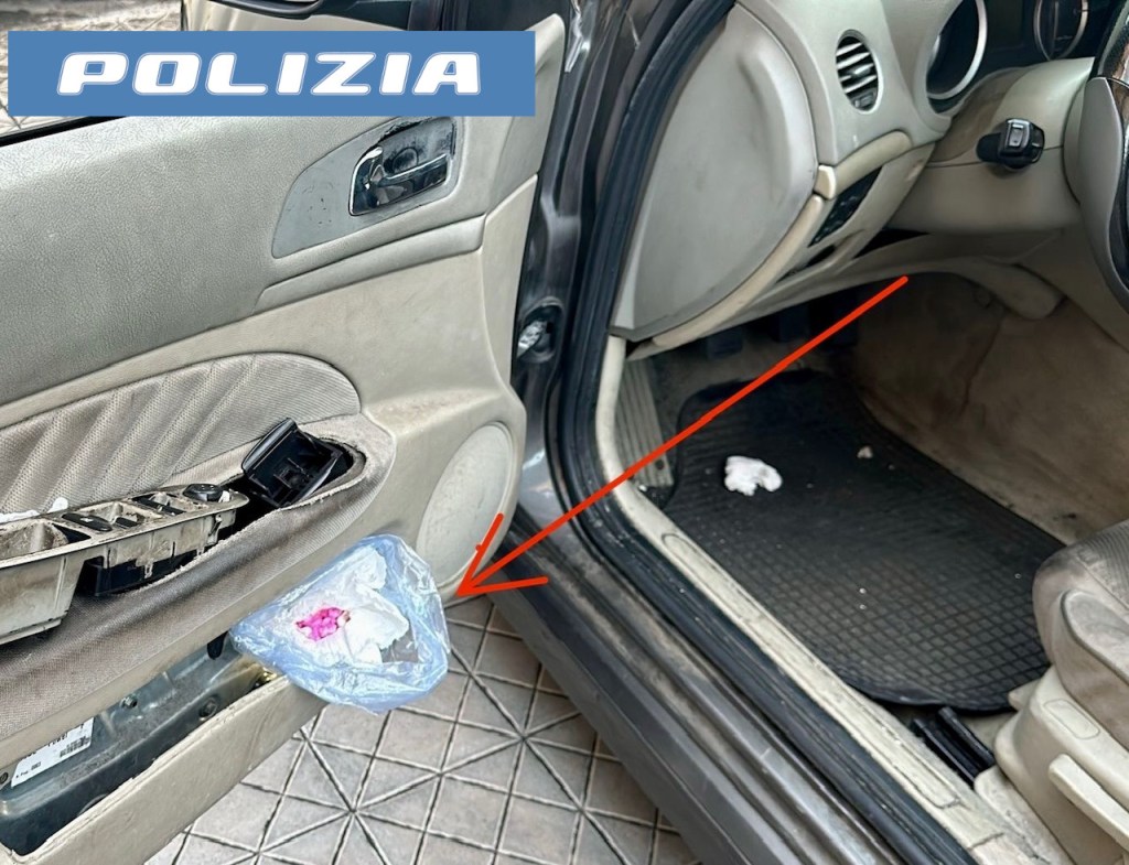 Il giovane è stato condotto negli uffici del Commissariato per essere sottoposto a perquisizione personale e veicolare. La perquisizione dell’auto ha portato alla luce un involucro contenente 57 dosi di droga, abilmente occultate all’interno del pannello della portiera anteriore sinistra. In particolare, sono stati rinvenuti 40 involucri di plastica rosa contenenti crack, per un peso complessivo di circa 11,5 grammi, e 18 involucri di plastica bianca contenenti cocaina, per un peso di circa 5,5 grammi. Un’ulteriore dose è stata trovata all’interno di uno zaino.