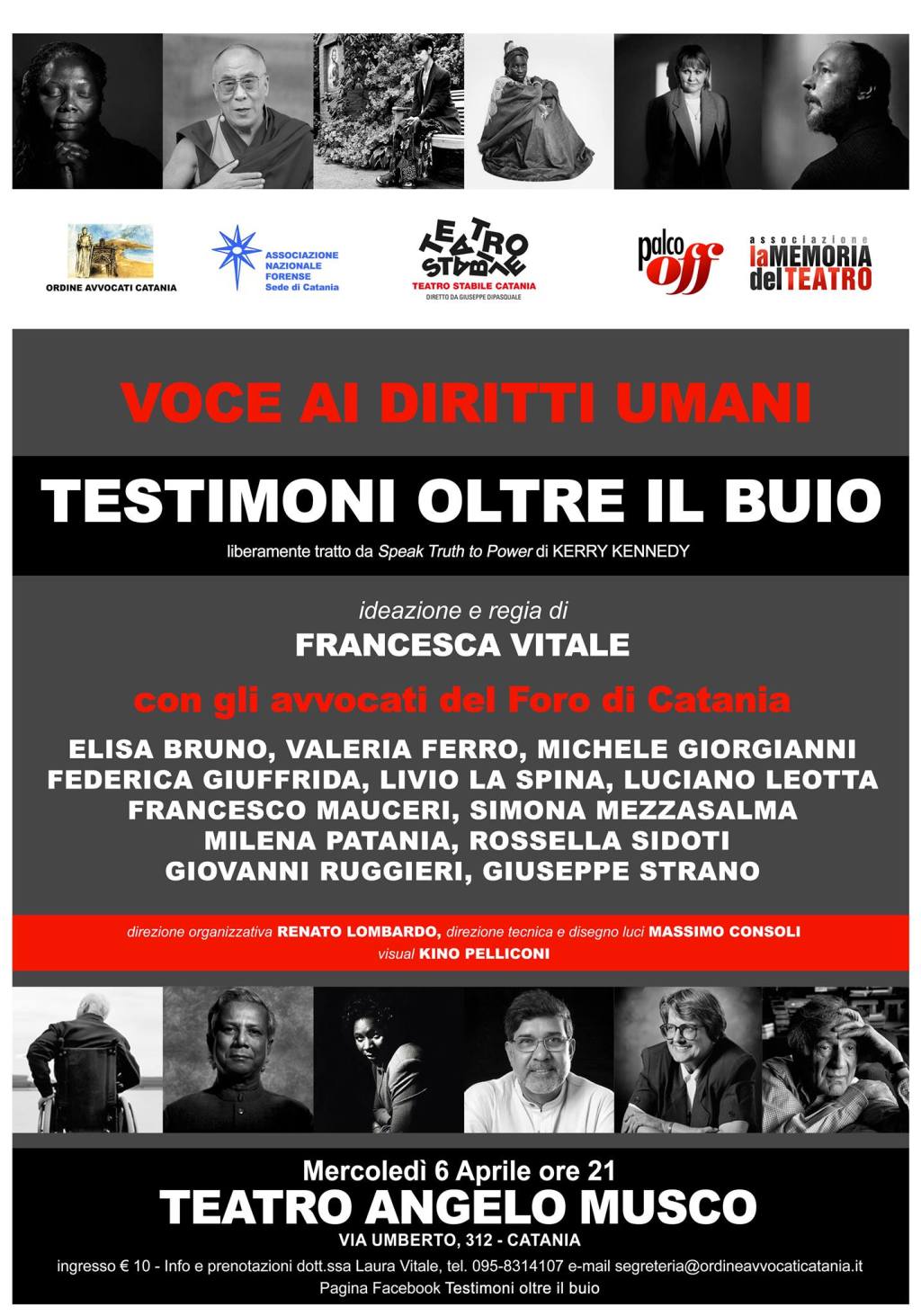 Lo spettacolo, in programma il prossimo 6 aprile, si terrà al Teatro Musco di Catania, con il supporto del Teatro Stabile di Catania, e nasce dal positivo esito di uno spettacolo teatrale dedicato ai diritti umani, voluto e finanziato dal Consiglio dell’Ordine degli Avvocati di Milano, su impulso della Scuola Superiore dell’Avvocatura e presentato al pubblico lo scorso 29 gennaio 2014 al Teatro dei Filodrammatici di Milano.