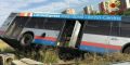 Sul posto i vigili del fuoco che sono impegnati nel recupero del bus.