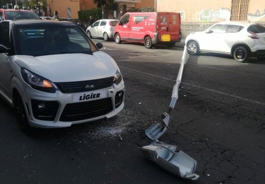 Nella caduta, il palo, ha coinvolto tre autovetture tra quelle parcheggiate nelle vicinanze e quelle che stavano transitando in quel momento.