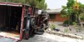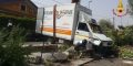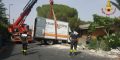 Un camioncino che stava effettuando un trasloco, dopo aver accidentalmente perso il controllo del mezzo, si é ribaltato ed é finito all’interno di una proprietà privata.