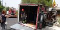 Nel ribaltamento, il conducente è rimasto incastrato nella cabina e si è procurato una frattura alla caviglia.