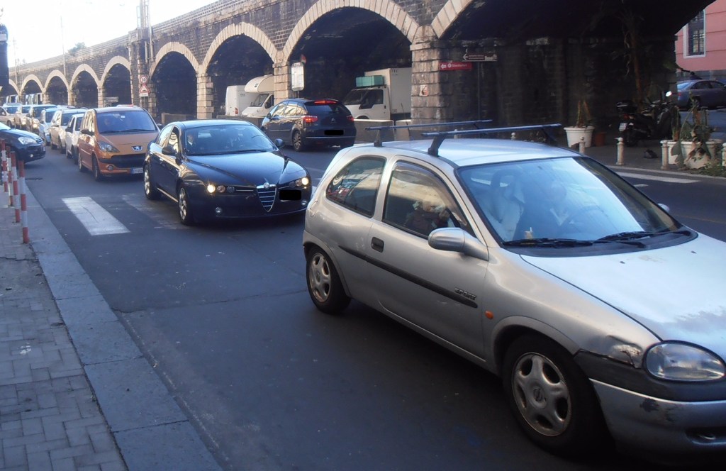 Le auto incolonnate da minuti in attesa di fare ingresso in città da via Cristoforo Colombo sono state deviate all’interno del Porto.